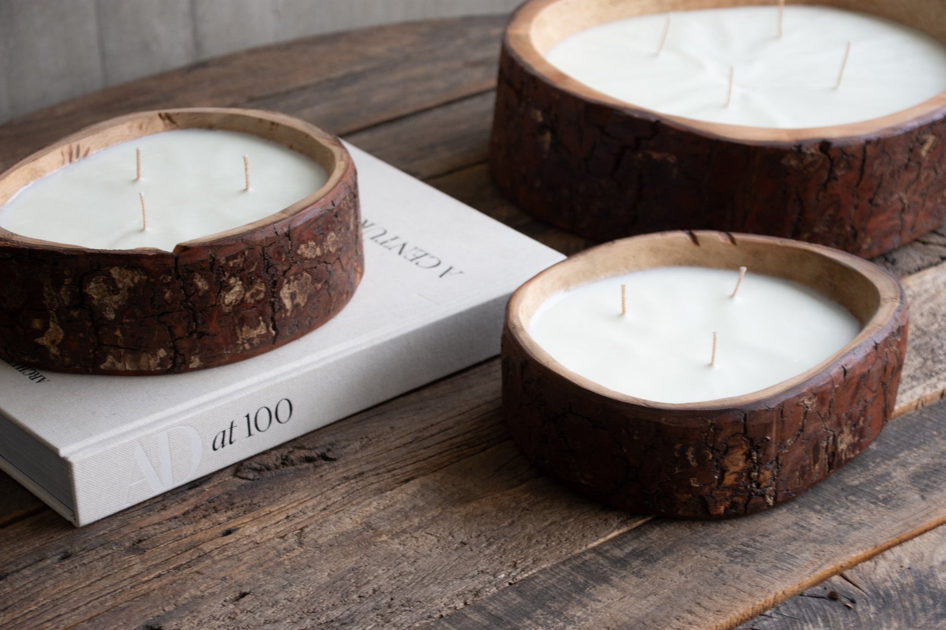 Vela de Soja M con Corteza Ensenada de madera de Lingue de árbol caído
